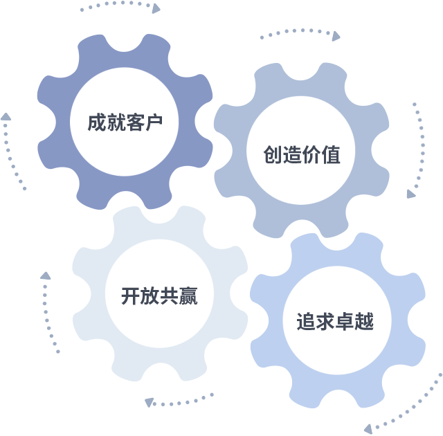 成就客户是一切决策的出发点,创造价值是衡量所有工作的标准,追求卓越是ag尊龙做事做人的态度,开放共赢是ag尊龙的格局也是最终的结果。价值观的齿轮环环相扣,推动着组织里的每个人不断向前。